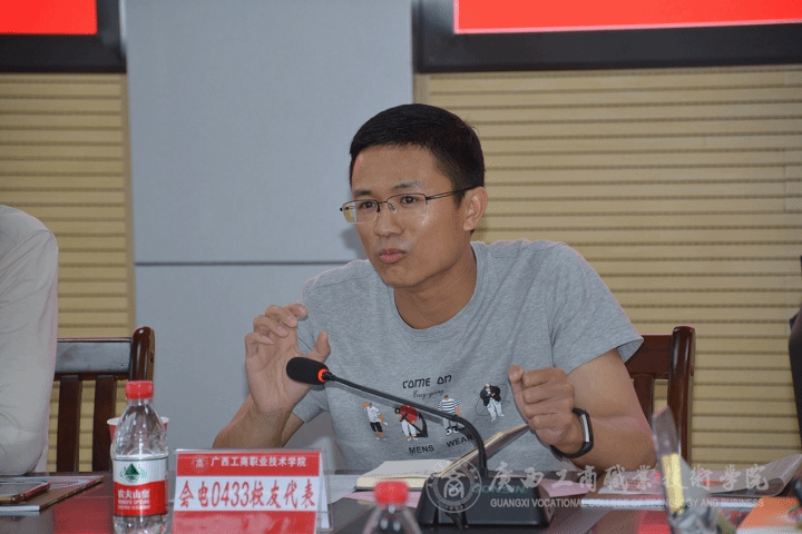 ?????? 隨后,黨委辦公室(學院辦公室)副主任覃遠霞同志向與會者匯報了學院校友工作情況。返校校友代表依次發(fā)言,圍繞如何促進學院發(fā)展,如何成功舉辦校友活動日,如何安排校友活動日相關(guān)議題,以及畢業(yè)多年重返母校的感受等方面內(nèi)容作了充分的交流發(fā)言。