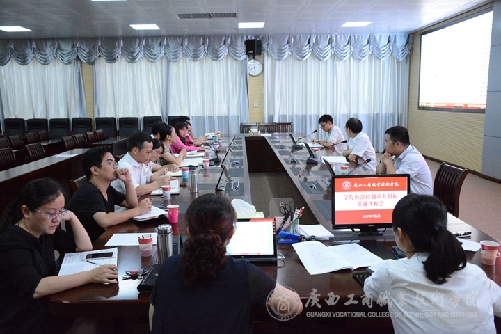 根據(jù)《關(guān)于轉(zhuǎn)發(fā)< 行政事業(yè)單位內(nèi)部控制規(guī)范(試行)>等系列文件的通知》(院財發(fā)〔2016〕27號)及《關(guān)于開展廣西工商職業(yè)技術(shù) 部控制重大招標(biāo)課題申報工作的通知》(廣商院教〔2017〕3號)文件精神及工作安排,我院于2017年7月6日下午,在2119會議室召開學(xué)院內(nèi)部控制重大招標(biāo)課題評標(biāo)會。
