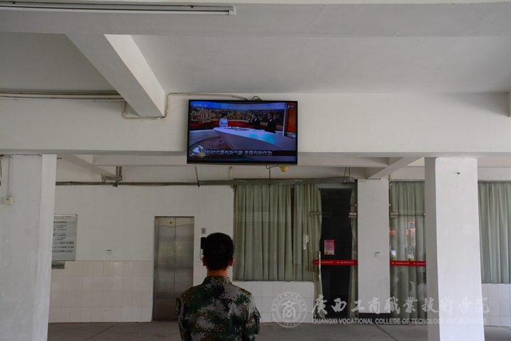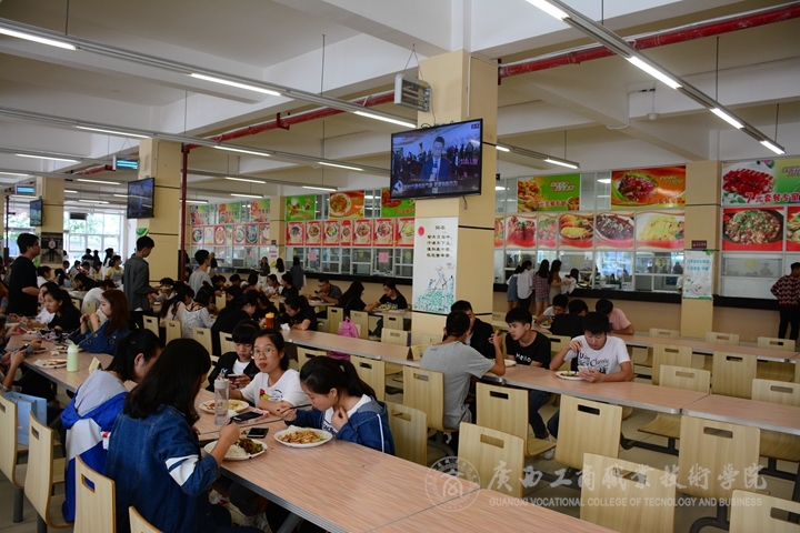 (同學們在食堂收看直播)