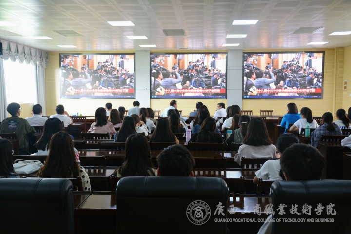 ? ? ? ? ?2017年10月25日上午,學院領(lǐng)導以及師生在報告廳集中共同收看了十九屆中共中央政治局常委同中外記者見面會直播。