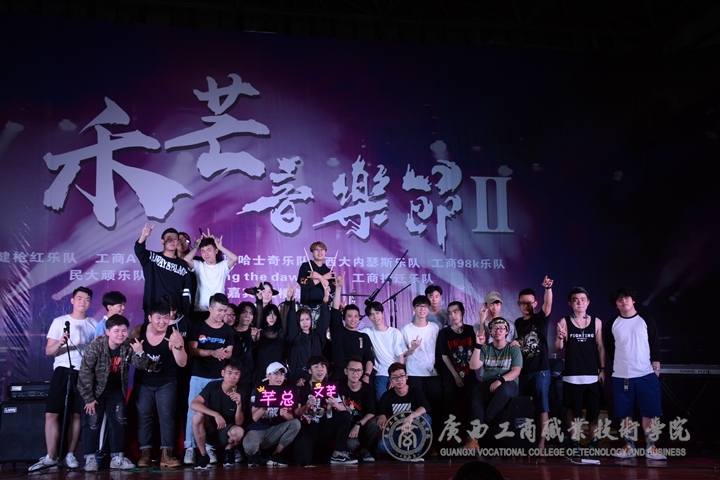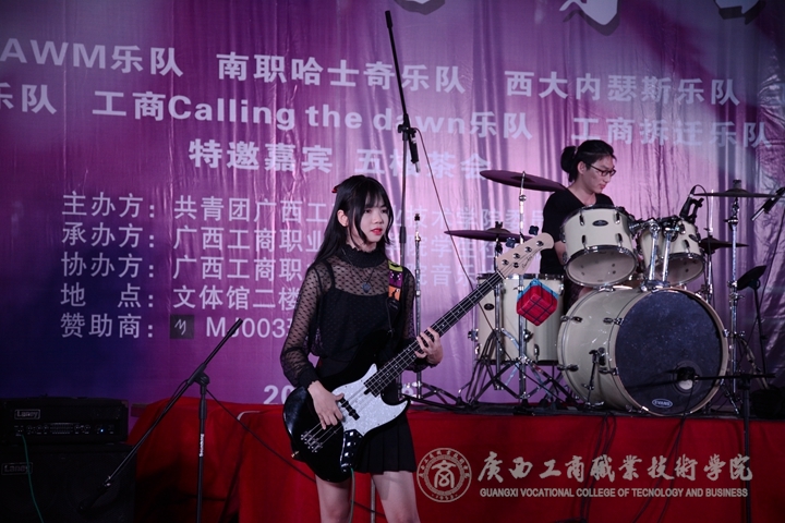 ? ? ? ? 隨后,南職“哈士奇樂隊(duì)”、西大“內(nèi)瑟斯樂隊(duì)”、工商“98K樂隊(duì)”、特邀嘉賓“五樓茶會(huì)”、民大“頑樂隊(duì)”、工商“拆遷樂隊(duì)”、工商“Calling the dawn樂隊(duì)”輪番上陣,風(fēng)格不一卻同樣精彩的音樂引爆廣商院。在音樂的帶動(dòng)下,現(xiàn)場歡呼聲不斷,樂隊(duì)成員積極與場下觀眾互動(dòng),這是一場懷揣著熱愛音樂之心的人們的狂歡。