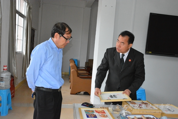? ? ? ? 2017年10月16日,自治區(qū)教育廳副巡視員陳衛(wèi)蒞臨我院,在院長陳杰的陪同下,視察我院藤瓷書藝工作坊發(fā)展建設(shè)情況。