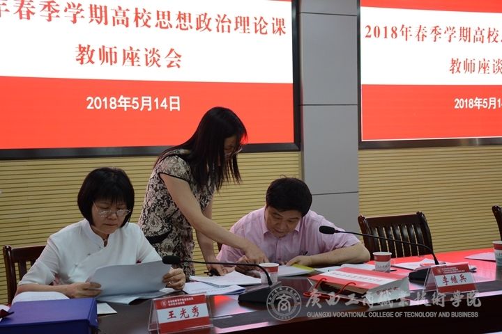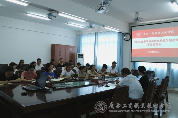 隨后進(jìn)行了座談會(huì)。座談會(huì)分為教師座談會(huì)和學(xué)生座談會(huì)。兩場(chǎng)座談會(huì)均由檢查組專家主持。思政部專職教師16人參加教師座談會(huì),2016級(jí)、2017級(jí)部分學(xué)生代表20人參加學(xué)生座談會(huì)。教師座談會(huì)中,檢查組專家了解了學(xué)院領(lǐng)導(dǎo)聽(tīng)課情況、老師上課情況以及財(cái)務(wù)支出情況等等。而學(xué)生座談會(huì)中,專家問(wèn)了學(xué)生代表喜歡哪位老師的授課方式,學(xué)生表示,黨委宣傳部部長(zhǎng)韋勝?gòu)?qiáng)教授穿著民族服飾上課,授課方式獨(dú)特有趣。