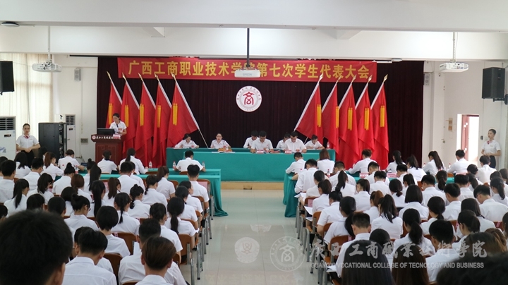 ??????? 2018年7月1日下午,廣西工商職業(yè)技術(shù)學(xué)院第七次學(xué)生代表大會(huì)在鵬飛校區(qū)教學(xué)樓報(bào)告廳隆重舉行。學(xué)院團(tuán)委副書(shū)記張斌、學(xué)院團(tuán)委副書(shū)記趙婷、學(xué)院團(tuán)委蒙曉旺、院系學(xué)生代表以及兄弟院校代表參加了本次大會(huì)。本次會(huì)議由蒙曉旺主持。