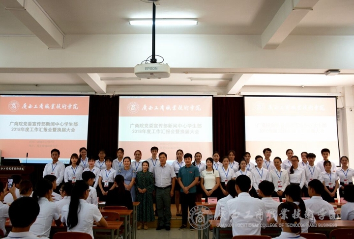 ??????? 2018年7月17日下午,學(xué)院黨委宣傳部新聞中心2018年度工作匯報(bào)會(huì)暨換屆大會(huì)在鵬飛校區(qū)報(bào)告廳召開。宣傳部部長韋勝強(qiáng)、部長助理陳宇寧、新聞中心指導(dǎo)老師莫惘、馮艷瓊、王衛(wèi)蘭,新聞中心全體成員及學(xué)院各大學(xué)生組織代表參加了本次大會(huì)。