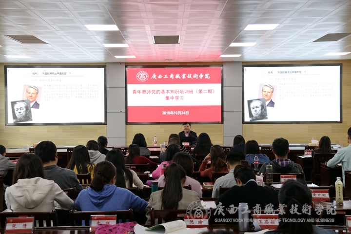 10月24日下午,由中共南寧市委黨校文史教研部李亮老師主講的第三堂我院2018年青年教師黨的基本知識(shí)專題培訓(xùn)課在鵬飛校區(qū)視頻會(huì)議室召開。學(xué)院30歲以下黨員教師和35歲以下非黨員教師等青年教師參加了此次培訓(xùn)。本次培訓(xùn)由黨委宣傳部王衛(wèi)蘭老師主持。