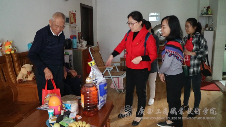 經管系黨總支莫春華同志、羅文社區(qū)黨支部李書記一行在慰問羅文社區(qū)93歲老黨員