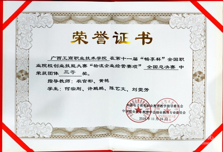 由全國電子商務(wù)職業(yè)教育教學(xué)指導(dǎo)委員會和中國職業(yè)技術(shù)教育學(xué)會創(chuàng)業(yè)教育專業(yè)委員會聯(lián)合舉辦的“第十一屆全國職業(yè)院校創(chuàng)業(yè)技能大賽物流企業(yè)經(jīng)營賽項全國總決賽”于2018年11月23-25日在河北交通職業(yè)技術(shù)學(xué)院舉辦,我院經(jīng)管系派出農(nóng)官彬、黃艷兩位老師帶隊四位2018級物流管理專業(yè)學(xué)生參賽。