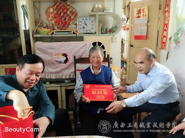 甲子輝煌,八桂飄香。在自治區(qū)成立60周年大慶前夕,自治區(qū)糧食局和物質(zhì)儲備局領(lǐng)導(dǎo)邱東副巡視員一行在我院黨委書記覃武云同志陪同下,走訪慰問我院離休干部文九齡和巫賽英兩位同志。向他們致以崇高敬意和誠摯問候,感謝他們數(shù)十年為糧食事業(yè)、教育事業(yè)發(fā)展作出的貢獻,并送去慰問金和慰問品,把黨和政府的關(guān)懷及時送到老黨員老同志手中。
