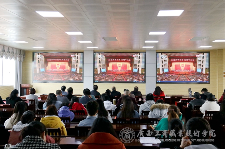 12月18日上午10時,中共中央、國務(wù)院隆重舉行慶祝改革開放40周年大會,中央領(lǐng)導同志出席大會,中共中央總書記、國家主席、中央軍委主席習近平在大會上發(fā)表重要講話。我院組織師生于鵬飛校區(qū)視頻會議室集體收看大會電視直播,學院黨委書記覃武云、院長陳杰和全體中層以上干部、各黨總支、直屬黨支部委員、思想政治理論課專兼職教師和各系學生代表參觀看了大會直播。