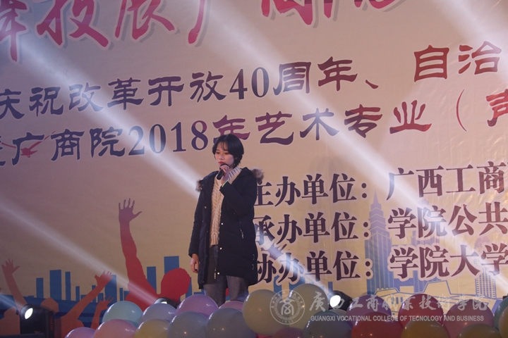 近日,我院在鵬飛校區(qū)文體館二樓舉辦了 “歌舞技展廣商院,奏響時代新華章”慶祝改革開放40周年、自治區(qū)成立60周年歌舞晚會暨廣商院2018年藝術(shù)專業(yè)技能大賽,本次比賽由學院公共基礎(chǔ)部承辦,學院大學生藝術(shù)團協(xié)辦。比賽邀請了廣西大學田昀艷副教授、廣西藝術(shù)學院白玲老師和胡郢老師、中國好聲音廣西賽區(qū)評委韋艷艷老師、廣西城市職業(yè)學院客座教授呂榮林老師擔任評委,學院部分教師代表、學生代表也觀看了本次比賽。