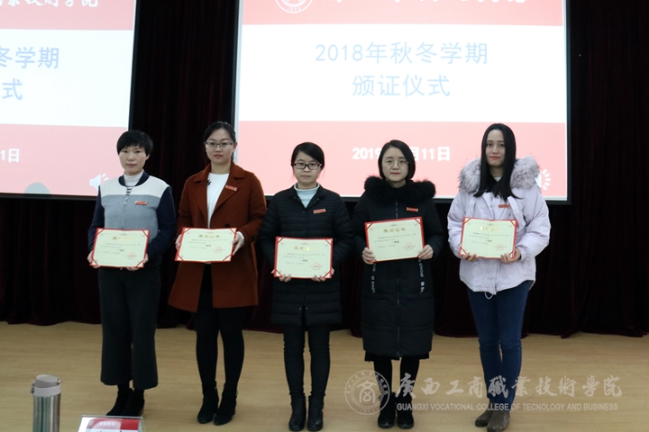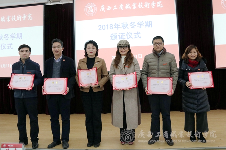 接著,陳杰分別為學(xué)院第三屆學(xué)術(shù)委員會(huì)劉萬(wàn)英、李影球、陳梅、張居設(shè)、張首楠、林雯等委員頒發(fā)聘書(shū),為“青年教師教學(xué)基本功競(jìng)賽”榮獲一等獎(jiǎng)的青年老師常榮榮、譚茜、黃蘭君、譚玉娥、黃雅璐等老師頒發(fā)獲獎(jiǎng)證書(shū)。