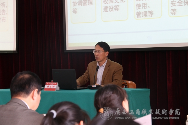 ? ? ? ? 為保證學(xué)院內(nèi)部質(zhì)量保證體系診斷與改進(jìn)復(fù)核工作有效開(kāi)展, 3月12日下午,學(xué)院內(nèi)部質(zhì)量保證體系診斷與改進(jìn)(以下簡(jiǎn)稱(chēng)“診改”)培訓(xùn)會(huì)在鵬飛校區(qū)報(bào)告廳順利開(kāi)展。學(xué)院領(lǐng)導(dǎo)及全體教師參加了培訓(xùn),培訓(xùn)會(huì)由學(xué)院院長(zhǎng)陳杰主持,由廣西診改專(zhuān)家委會(huì)主任委員、廣西工業(yè)職業(yè)技術(shù)學(xué)院黨委書(shū)記韓志剛教授主講。
