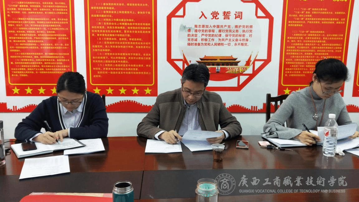 ? ? ? ? 會上,首先由張宇斐向大會作學(xué)生黨支部2018年黨建工作總結(jié),分別從政治建設(shè)、思想建設(shè)、組織建設(shè)、作風(fēng)建設(shè)和紀(jì)律建設(shè)等五個方面匯報了支部建設(shè)情況,指出在黨員隊伍建設(shè)、網(wǎng)絡(luò)輿情監(jiān)控、推進(jìn)基層黨組織建設(shè)和校外學(xué)生黨員培養(yǎng)工作中有較為突出的亮點。同時,對黨支部2019年黨建工作提出新的要求:一是加強(qiáng)對大學(xué)生黨員教育的有效方法、管理內(nèi)容、管理機(jī)制和活動形式等內(nèi)容進(jìn)行研究和創(chuàng)新;二是加強(qiáng)組織理論學(xué)習(xí),豐富黨員活動形式;三是加強(qiáng)先進(jìn)黨員的培育和榜樣宣傳力度。接著,是開展全體黨員的批評與自我批評環(huán)節(jié),每位黨員都能嚴(yán)格按照程序從學(xué)習(xí)貫徹習(xí)近平新時代中國特色社會主義思想,樹牢“四個意識”、堅定“四個自信”、堅決做到“兩個維護(hù)”和履職踐諾、擔(dān)當(dāng)作為、真抓實干、遵規(guī)守紀(jì)等方面查找差距和不足,認(rèn)真剖析存在問題的原因及確定下一步整改計劃。同時,每位黨員都依次對其他黨員同志提出批評與建議,內(nèi)容涵蓋了教學(xué)管理、科研立項、教學(xué)方法、學(xué)生管理、突發(fā)事件應(yīng)急處理、人際溝通等方面,為每位黨員進(jìn)一步加強(qiáng)自身綜合能力提供了更多可行性的方法和寶貴意見。在批評和自我批評之后,開展民主評議黨員活動,依次進(jìn)行個人自評、黨員互評和民主測評。