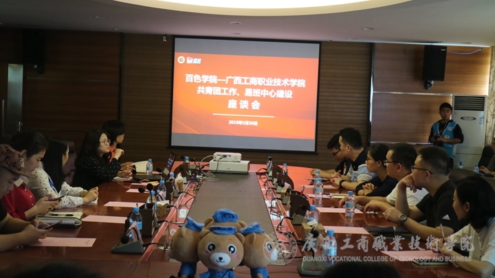 ? ? ? ? 我院團(tuán)學(xué)師生一行,首先來到百色學(xué)院易班發(fā)展中心和網(wǎng)絡(luò)思想政治工作中心進(jìn)行參觀學(xué)習(xí),在百色學(xué)院易班發(fā)展中心胡合老師的帶領(lǐng)下,參觀了網(wǎng)絡(luò)思想政治工作中心、易班工作室、紅色文化網(wǎng)絡(luò)陳列館、紅學(xué)易班等地,隨后,雙方舉行共青團(tuán)工作、易班發(fā)展中心建設(shè)座談會,會上,胡合老師就易班發(fā)展歷程、管理體制、平臺服務(wù)、易班優(yōu)課教學(xué)等建設(shè)內(nèi)容進(jìn)行簡要介紹,接著,百色學(xué)院學(xué)工部副部長、團(tuán)委書記徐洪剛對我院團(tuán)學(xué)師生一行的到來表示熱烈歡迎,并介紹了百色學(xué)院共青團(tuán)工作的經(jīng)驗(yàn)和做法。我院團(tuán)委副書記趙婷介紹了學(xué)院發(fā)展、共青團(tuán)工作、團(tuán)學(xué)骨干培養(yǎng)等情況,最后,雙方圍繞團(tuán)干發(fā)展、資源整合、項(xiàng)目化建設(shè)等問題開展討論。