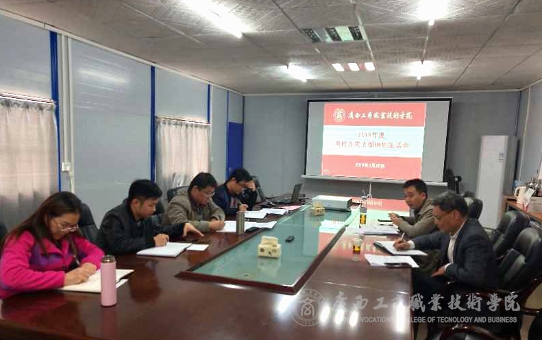 ??????? 近日,根據(jù)學(xué)院黨委統(tǒng)一部署,鳴校辦黨支部在武鳴新校區(qū)會議室召開了2018年度組織生活會并開展民主評議黨員活動。會議由鳴校辦支部書記廖顯圖主持,全體黨員參加了會議。