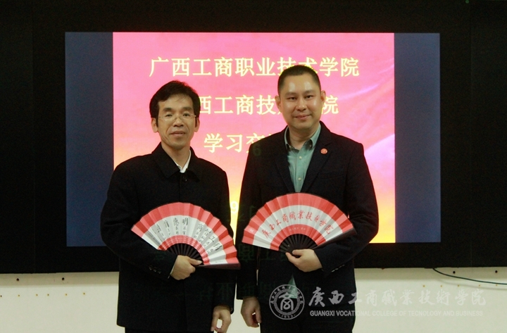 ? ? ? ? 最后,陳寧春副院長(zhǎng)向廣西工商技師學(xué)院贈(zèng)送廣商院文化扇。通過(guò)本次學(xué)習(xí)考察,進(jìn)一步加強(qiáng)了與廣西工商技師學(xué)院的交流和聯(lián)系,為下一步深入合作奠定了基礎(chǔ)。