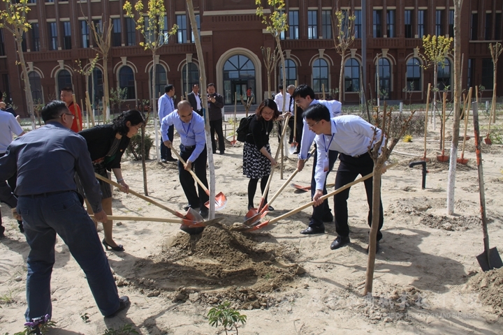 ? ? ? ? 會后,學院黨委書記覃武云與和田地委委員、行署副專員、地委教育工委副書記張建、地區(qū)教育局領導等同志,一同來到和田職業(yè)技術學院教學樓前共同植樹留念。