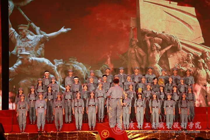 第一篇章是《青春筑夢》。由學(xué)院大學(xué)生藝術(shù)團(tuán)戲劇社、禮儀隊(duì)、聲樂隊(duì)帶來的情景劇《追憶1919》,在一連串精心編排的表演中,重溫了五四運(yùn)動(dòng)的緣起、發(fā)展以及建黨、建團(tuán)的歷史;學(xué)院大學(xué)生記者團(tuán)激情澎湃的朗誦《百年前的那一聲怒吼》,贏得了陣陣掌聲;在工商1803班的合唱《打靶歸來》氣勢磅礴的歌聲下,結(jié)束了《青春筑夢》的篇章。