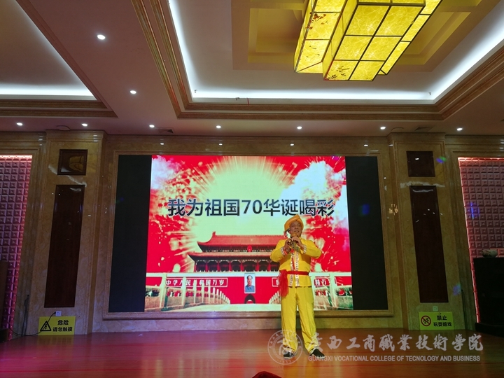 ? ? ? ? 5月8日上午,廣西工商職業(yè)技術(shù)學(xué)院工會(離退辦)與自治區(qū)糧食和物資儲備局老干處在南寧聯(lián)合舉辦的“為祖國70華誕喝彩”慶?;顒?。自治區(qū)糧食和物資儲備局在邕離退休干部和學(xué)院離退休干部共120多人共同聯(lián)歡。學(xué)院黨委副書記、工會主席蒙啟成出席聯(lián)歡會,并為大家開講了一場別開生面的新時代講習(xí)所學(xué)習(xí)會。