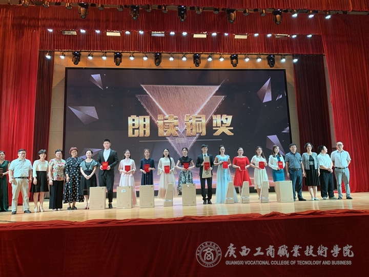 ??????? 5月30日下午,2019首屆廣西高職高專(zhuān)圖書(shū)館“最美朗讀者”現(xiàn)場(chǎng)總決賽在廣西工業(yè)職業(yè)技術(shù)學(xué)院綜合禮堂隆重舉行,來(lái)自全區(qū)21所高職高專(zhuān)院校的27位選手參加了比賽。經(jīng)過(guò)激烈角逐,我院獲得朗讀銅獎(jiǎng)(三等獎(jiǎng))、優(yōu)秀選手獎(jiǎng)及優(yōu)秀組織獎(jiǎng)各一項(xiàng),其中來(lái)自財(cái)信系財(cái)管1806班的秦文靜同學(xué)獲得銅獎(jiǎng)(三等獎(jiǎng))、經(jīng)管系營(yíng)銷(xiāo)1803班的蒙良燕同學(xué)獲得優(yōu)秀選手獎(jiǎng)。