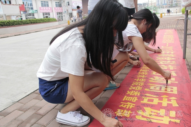 2015年5月25日中午,我院在校本部食堂前舉行糧食科技活動周——節(jié)糧倡議簽名活動并發(fā)放愛糧節(jié)糧科普宣傳冊。簽名活動現(xiàn)場“糧食科技活動周”的宣傳橫幅格外醒目,過往的同學、老師們甚至是掃地的阿姨都紛紛駐足停留在橫幅前,參與簽名活動,在橫幅上留下自己的名字。活動現(xiàn)場還給同學們派發(fā)了關(guān)于節(jié)約糧食的宣傳冊子,冊子上“一滴汗,一滴糧”“我光盤,我光榮”等宣傳標語引人深思,同學們拿過宣傳冊邊走邊看。