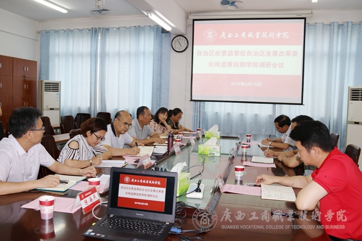 6月10日,自治區(qū)紀委監(jiān)委駐自治區(qū)發(fā)展改革委紀檢監(jiān)察組組長李祚標、紀檢室主任謝卓營、紀檢室主任科員付平華一行三人來我院調(diào)研。學院黨委書記覃武云,學院黨委副書記、紀委書記蒙啟成等參加了調(diào)研。