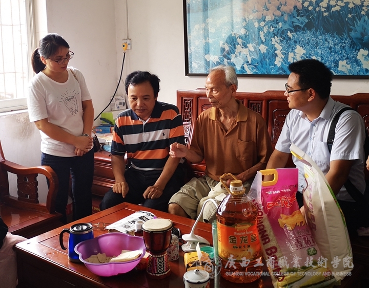 ? ? ? ? 為貫徹落實《中共廣西工商職業(yè)技術(shù)學(xué)院委員會關(guān)于印發(fā)< 中共廣西工商職業(yè)技術(shù)學(xué)院委員會慶祝建黨98周年系列活動工作方案>的通知》(廣商院黨〔2019〕9號)文件精神,繼續(xù)教育部黨支部抓好在職黨員到社區(qū)為群眾服務(wù)工作,持續(xù)開展黨內(nèi)關(guān)愛幫扶,深入聯(lián)系社區(qū)開展“雙報到”服務(wù)活動。在“七一”前夕,為關(guān)懷社區(qū)生活困難的老黨員,繼續(xù)教育部黨支部與永和社區(qū)黨總支,帶著黨和政府的關(guān)懷與溫暖,到困難老黨員蘇其中、黃沛云同志家進行走訪慰問活動,以實際行動傳遞濃濃愛心。