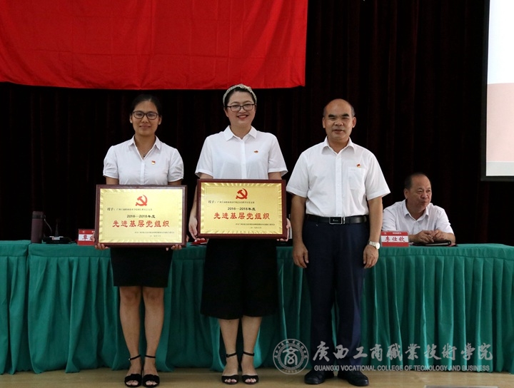 (覃武云書記為獲得先進基層黨組織代表頒獎)