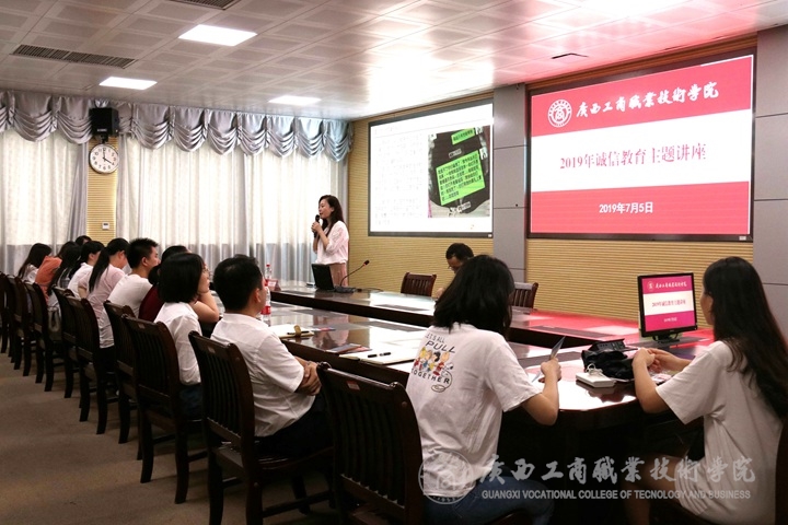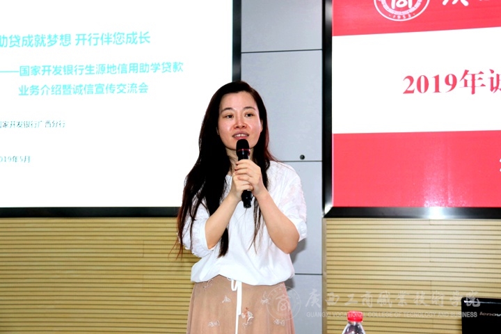 ? ? ? ? 為進(jìn)一步做好學(xué)生誠信教育,更好地開展學(xué)院生源地信用助學(xué)貸款工作,傳播誠信、感恩,激勵正能量,我院開展了一系列學(xué)生資助誠信教育主題活動。7月5日下午,我院于鵬飛校區(qū)教學(xué)樓視頻會議室舉辦2019年誠信教育主題講座,進(jìn)行金融誠信教育和國開行生源地信用助學(xué)貸款業(yè)務(wù)宣介。黨委學(xué)生工作部全體人員、各系黨總支書記、分管學(xué)工副主任、2017級、2018級輔導(dǎo)員,各系2017級、2018級已獲生源地信用助學(xué)貸款學(xué)生代表參加本次講座,會議特邀國家開發(fā)銀行廣西分行客戶五處副處長劉曉宇擔(dān)任主講人。講座由學(xué)工部副部長林雯主持。