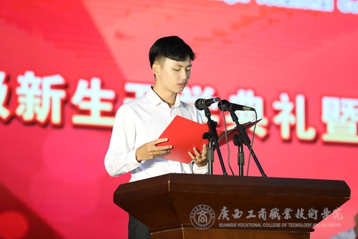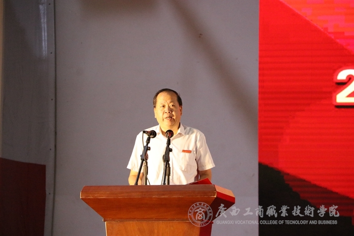 緊接著,由學(xué)院2019年自治區(qū)優(yōu)秀教育工作者榮譽(yù)獲得者闕勇平教授作為教師代表發(fā)言。他提出了幾點(diǎn)問題和建議并送上對(duì)同學(xué)們的祝福:祝賀大家十幾年的寒窗苦讀走進(jìn)了大學(xué)的殿堂,開啟了在異鄉(xiāng)異地求學(xué)的獨(dú)立生活,加入到廣商院。他提出三點(diǎn)問題:一是我是誰,多學(xué)習(xí),多理性;二是我該怎么做,強(qiáng)體魄,早獨(dú)立。三是我要怎么做,求學(xué)認(rèn)知,艱苦奮斗。他提出幾點(diǎn)希望:一是希望同學(xué)們學(xué)會(huì)做人,培養(yǎng)良好個(gè)人品德。二是希望同學(xué)們學(xué)會(huì)怎樣學(xué)習(xí),樹立遠(yuǎn)大目標(biāo),穩(wěn)定學(xué)習(xí)專業(yè)知識(shí),勤于技能練習(xí),三是同學(xué)們要學(xué)會(huì)感恩,往后的日子多看看父母和老師。并希望同學(xué)們秉承精工智商、明德修身的校訓(xùn),用勤奮、正直、誠實(shí)和樂觀,不斷磨礪自己的品格和意志。