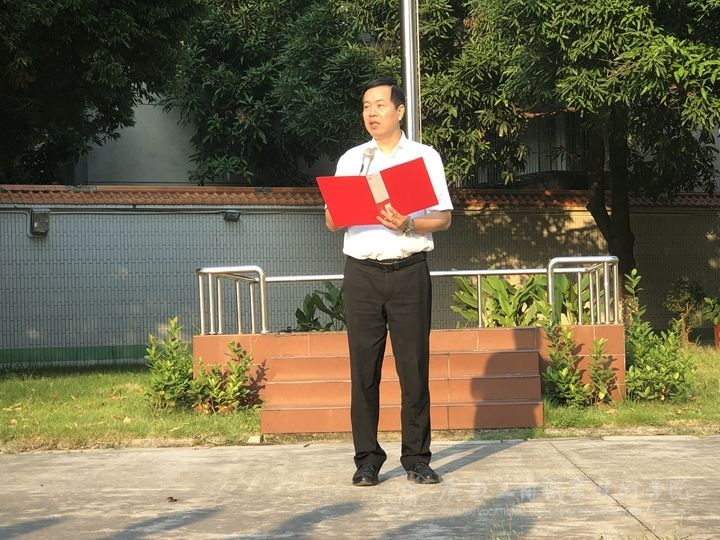 ??????? 升旗儀式第一項議程是由全體師生共同合唱《我和我的祖國》,當熟悉的旋律響起,全場師生齊聲歌唱:“我和我的祖國,一刻也不能分割”,老師和同學們隨著音樂揮舞著手中的小紅旗,動聽的歌聲在校園里久久回蕩。