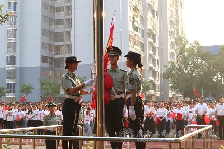 ??????? 為慶祝中華人民共和國成立70周年,我院于9月30日早七點半在中堯校區(qū)田徑場上舉行了升旗儀式。學院院長李維、副院長陳寧春出席了此次活動,學院各部門、各單位中層干部、教師代表以及中堯校區(qū)全體同學參加了本次升旗儀式,。