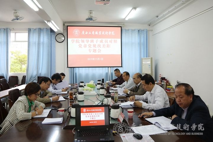 ? ? ? ? 11月1日,學(xué)院召開學(xué)院領(lǐng)導(dǎo)班子成員對照黨章黨規(guī)找差距專題會議。學(xué)院黨委委員、領(lǐng)導(dǎo)班子成員參加專題會,學(xué)院黨委其他委員,學(xué)院主題教育辦公室相關(guān)人員列席專題會,覃武云主持專題會。