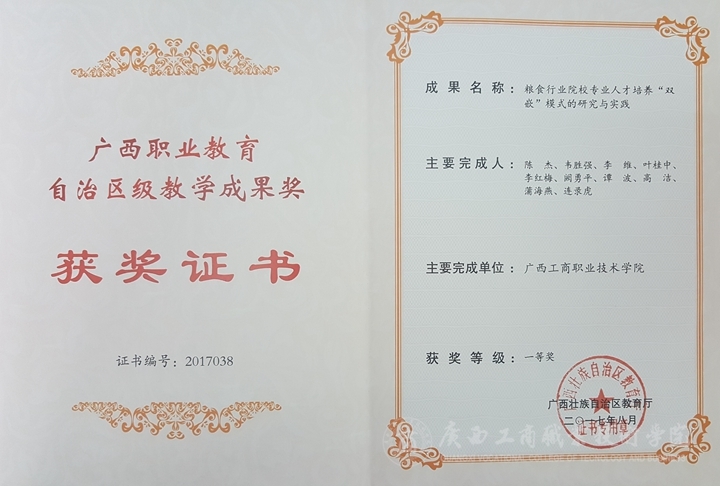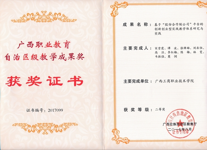 (2017年廣西職業(yè)教育自治區(qū)級教學成果二等獎)