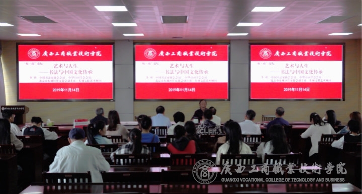 隨后,李欣提筆書寫“糧足商富”四個(gè)大字表達(dá)了對(duì)我院未來辦學(xué)發(fā)展的美好祝愿,并題寫我院校名“廣西工商職業(yè)技術(shù)學(xué)院”和校訓(xùn)“精工智商,明德修身”,向大家展示了氣韻渾然天成、妙趣匠心獨(dú)具的書法作品,本次“糧·商”論壇在熱烈掌聲中結(jié)束。