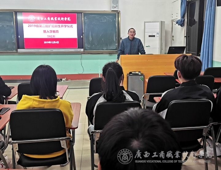 2019年12月4日19時(shí),財(cái)信系在中堯校區(qū)工會(huì)樓302教室,組織2019級(jí)高職擴(kuò)招二階段新生參加新生開學(xué)儀式暨入學(xué)教育。學(xué)院學(xué)工部副部長(zhǎng)林雯、財(cái)信系主任蘇波、財(cái)信系學(xué)工副主任譚序光、財(cái)信系教學(xué)秘書呂周及財(cái)信系高職擴(kuò)招二階段19名新生參加了開學(xué)儀式。
