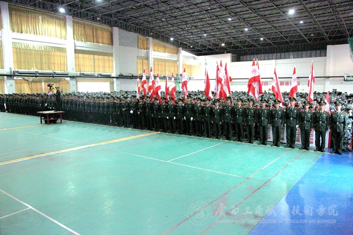 2019年12月9日上午,廣西工商職業(yè)技術(shù)學(xué)院2019級新生軍訓(xùn)動員大會在鵬飛校區(qū)文體館二樓隆重舉行。學(xué)院副院長李仕欽和武警廣西總隊機動支隊一大隊大隊長黃康洋出席了會議,學(xué)院教務(wù)科研處處長闕勇平;后勤管理處處長助理盧炳秋;會計系黨總支書記林芳;會計系主任張首楠;經(jīng)管系黨總支書記莫春華;經(jīng)管系主任高潔;財信系黨總支副書記趙婷;會計系副主任張宇斐;經(jīng)管系副主任張利;各系2019級輔導(dǎo)員、學(xué)工部相關(guān)老師以及2019級全體學(xué)生3800多名參加了本次動員大會。動員大會由黨委學(xué)生工作部副部長林雯主持。