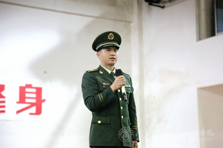 接著,學(xué)院副院長李仕欽上臺講話,首先,他對大力支持我院軍訓(xùn)工作的全體教官表示熱烈的歡迎和衷心的感謝。李仕欽認(rèn)為軍事訓(xùn)練是大學(xué)生活的重要環(huán)節(jié),也是和平時進(jìn)行國防教育的重要手段,新生參加軍事訓(xùn)練,對同學(xué)們的健康成長具有重要的現(xiàn)實意義。為能扎扎實實做好今年的軍訓(xùn)工作,李仕欽對所有參訓(xùn)同學(xué)提出以下三點希望:第一、要高度重視,嚴(yán)格要求;希望同學(xué)們要通過軍訓(xùn),磨練意志,強健體魄,培養(yǎng)集體觀念,強化組織紀(jì)律性,形成良好的班風(fēng)和學(xué)風(fēng),促進(jìn)綜合素質(zhì)的提高。第二、要尊重教官,刻苦訓(xùn)練;軍訓(xùn)教官是大家開展軍事訓(xùn)練的導(dǎo)師,大家一定要給予教官充分的尊重,要虛心學(xué)習(xí)武警部隊的好思想、好作風(fēng)和好傳統(tǒng),學(xué)習(xí)他們崇高的愛國主義、無私奉獻(xiàn)和艱苦奮斗的精神。第三、要遵守紀(jì)律,聽從指揮;服從命令、聽從指揮是軍人的天職,是來之能戰(zhàn)、戰(zhàn)之能勝的重要保障,同學(xué)們在軍訓(xùn)期間要以軍人的標(biāo)準(zhǔn)來嚴(yán)格要求自己,遵章守紀(jì),令行禁止。李仕欽發(fā)言引起了陣陣掌聲。至此,此次大會各項議程圓滿完成。
