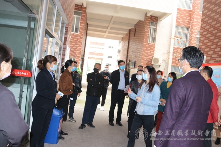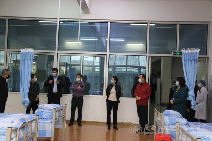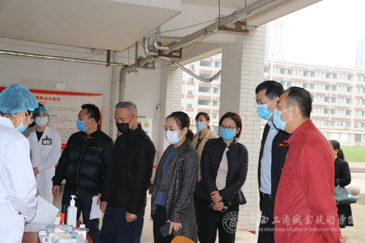 匯報(bào)會(huì)結(jié)束后,評(píng)估組在李維院長(zhǎng)、蒙啟成副書記、安仲文副院長(zhǎng)、陳寧春副院長(zhǎng)及有關(guān)工作人員的陪同下,分別實(shí)地檢查了我院的教室、學(xué)生宿舍、醫(yī)務(wù)室、隔離室、留觀室、防疫物資儲(chǔ)備室、宣傳欄、食堂等場(chǎng)所的開學(xué)準(zhǔn)備工作情況,現(xiàn)場(chǎng)查看了師生返校演練過程,并查閱了有關(guān)臺(tái)賬,對(duì)負(fù)責(zé)具體工作的相關(guān)工作人員進(jìn)行了詳細(xì)的問詢和具體的工作指導(dǎo)。