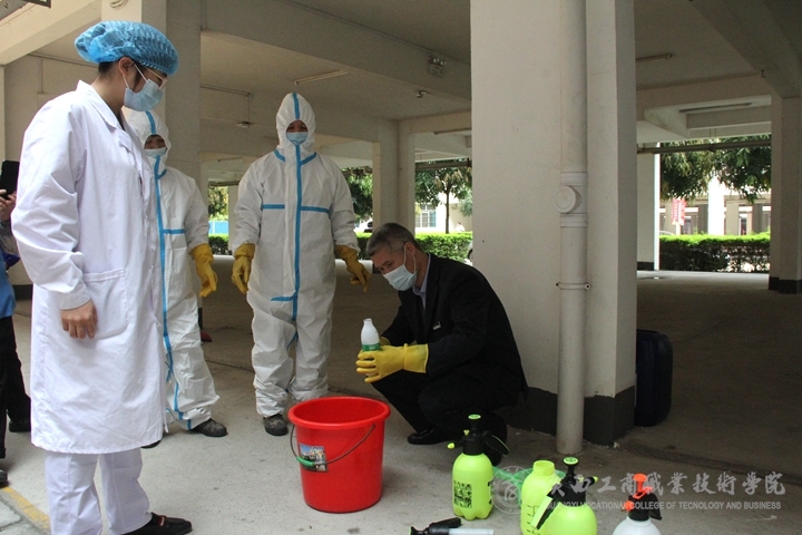 演練組首先開始了防疫物資的發(fā)放(領(lǐng)用)演練,物業(yè)服務(wù)中心從學(xué)院物資倉(cāng)庫(kù)正常領(lǐng)取防疫物資,消殺人員在醫(yī)務(wù)人員的指導(dǎo)下進(jìn)行消毒液配比,并開始進(jìn)行教室消殺、公共衛(wèi)生間消殺、對(duì)垃圾桶進(jìn)行消殺、電梯消殺、辦公室內(nèi)消殺、宿舍內(nèi)消殺、宿舍公共區(qū)域消殺、入校物品(行李)消殺等校園消殺活動(dòng)。