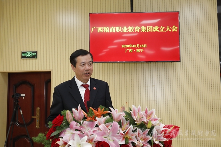 廣西工商職業(yè)技術(shù)學(xué)院黨委書記覃武云在會上致辭,他指出,隆重舉行廣西糧商職業(yè)教育集團成立大會,成立職業(yè)教育集團是貫徹落實習(xí)近平總書記關(guān)于糧食生產(chǎn)和安全的重要指示要求,是響應(yīng)政府對職業(yè)教育發(fā)展的新要求和新期待的應(yīng)勢之策,對全面深化教育教學(xué)改革,實現(xiàn)校企資源共享融合,充分發(fā)揮職業(yè)教育服務(wù)廣西經(jīng)濟社會發(fā)展的功能具有重要意義。他表示我們將依托職業(yè)教育集團,推進辦學(xué)體制改革,擴大優(yōu)質(zhì)教育資源,不斷提高教學(xué)質(zhì)量,彰顯專業(yè)特色,引領(lǐng)區(qū)域職教發(fā)展,充分發(fā)揮牽頭院校的橋梁和紐帶作用,與各成員單位緊密合作,促進職業(yè)院校與行業(yè)企業(yè)的互惠多贏,共同發(fā)展。