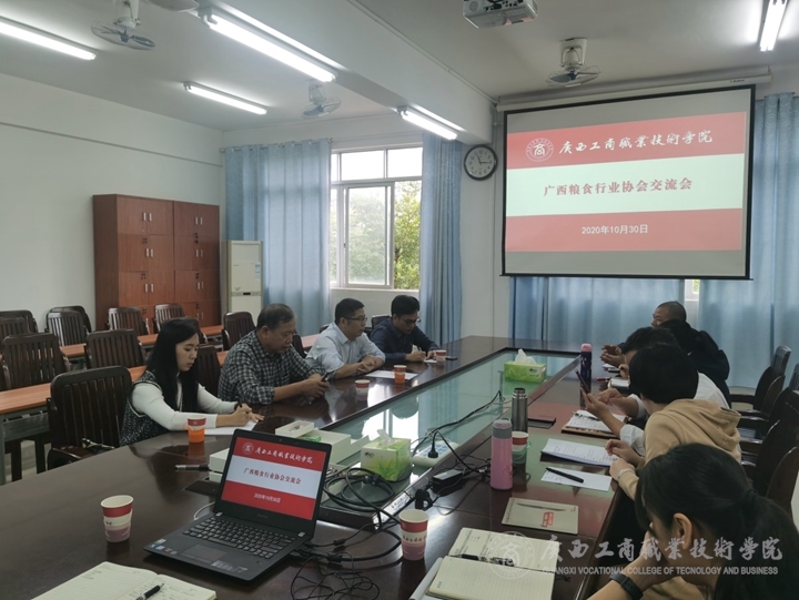 近日,廣西糧食行業(yè)協(xié)會(huì)秘書長劉俊、廣西糧食發(fā)展有限公司產(chǎn)業(yè)發(fā)展部副經(jīng)理趙善民等4人到我院進(jìn)行校企合作交流,學(xué)院副院長闕勇平,教務(wù)處、信息與設(shè)計(jì)學(xué)院等部門相關(guān)負(fù)責(zé)人和老師參加此次交流會(huì)。