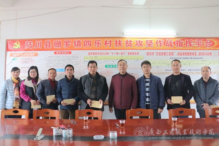 12月15日,學(xué)院黨委副書記蒙啟成率隊(duì),黨委宣傳部、黨委學(xué)生工作部、通識(shí)教育學(xué)院老師代表一行7人赴陸川珊羅鎮(zhèn)定點(diǎn)扶貧村四樂村開展助力脫貧攻堅(jiān)工作。