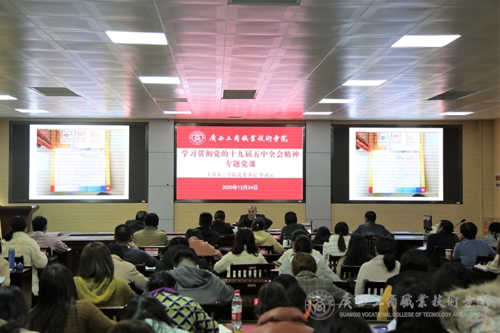 12月24日下午,學(xué)院在鵬飛校區(qū)教學(xué)樓2145會(huì)議室舉辦學(xué)習(xí)宣傳貫徹黨的十九屆五中全會(huì)精神專題黨課。本次黨課由學(xué)院黨委書記覃武云主講。學(xué)院中層領(lǐng)導(dǎo)干部代表、思政課教師代表、青年教師黨員及教職工入黨積極分子、發(fā)展對象參加學(xué)習(xí)。