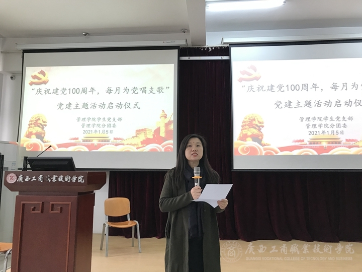 2021年1月5日中午,為激發(fā)大學(xué)生愛黨愛國熱情,表達(dá)傳承紅色基因、爭做時代新人、勇?lián)褡鍙?fù)興大任的遠(yuǎn)大志向,管理學(xué)院在鵬飛校區(qū)2145報告廳召開“慶祝建黨100周年 每月為黨唱支歌”黨建主題活動啟動儀式。管理學(xué)院相關(guān)負(fù)責(zé)人和管理學(xué)院學(xué)生黨支部全體教師黨員及管理學(xué)院2019級及2020級所有班級的團(tuán)支部書記和文娛委員共76人參加會議。