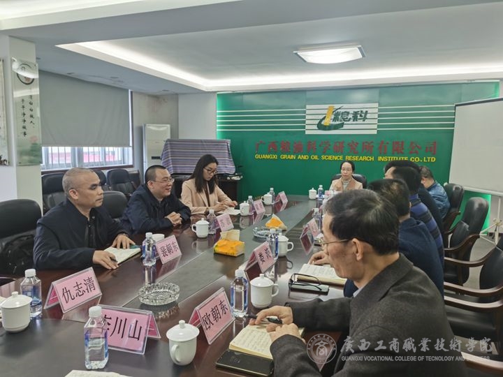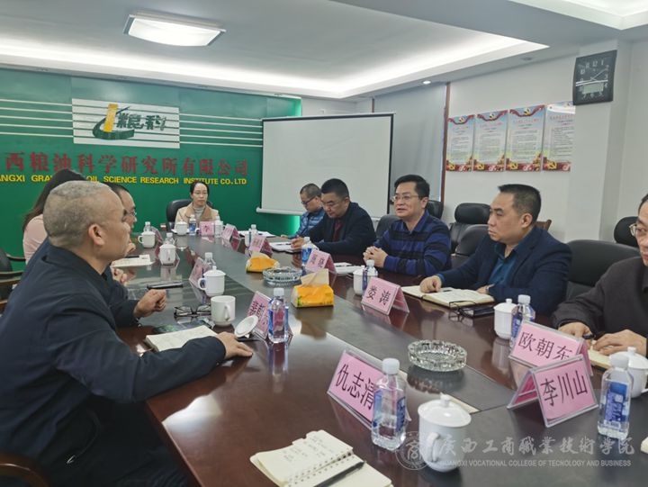 2021年2月1日,學(xué)院教務(wù)處副處長(zhǎng)蘇波、糧油康旅學(xué)院黨支部書(shū)記梁昕、副院長(zhǎng)裴朝東一行4人赴廣西糧油科學(xué)研究所有限公司交流。