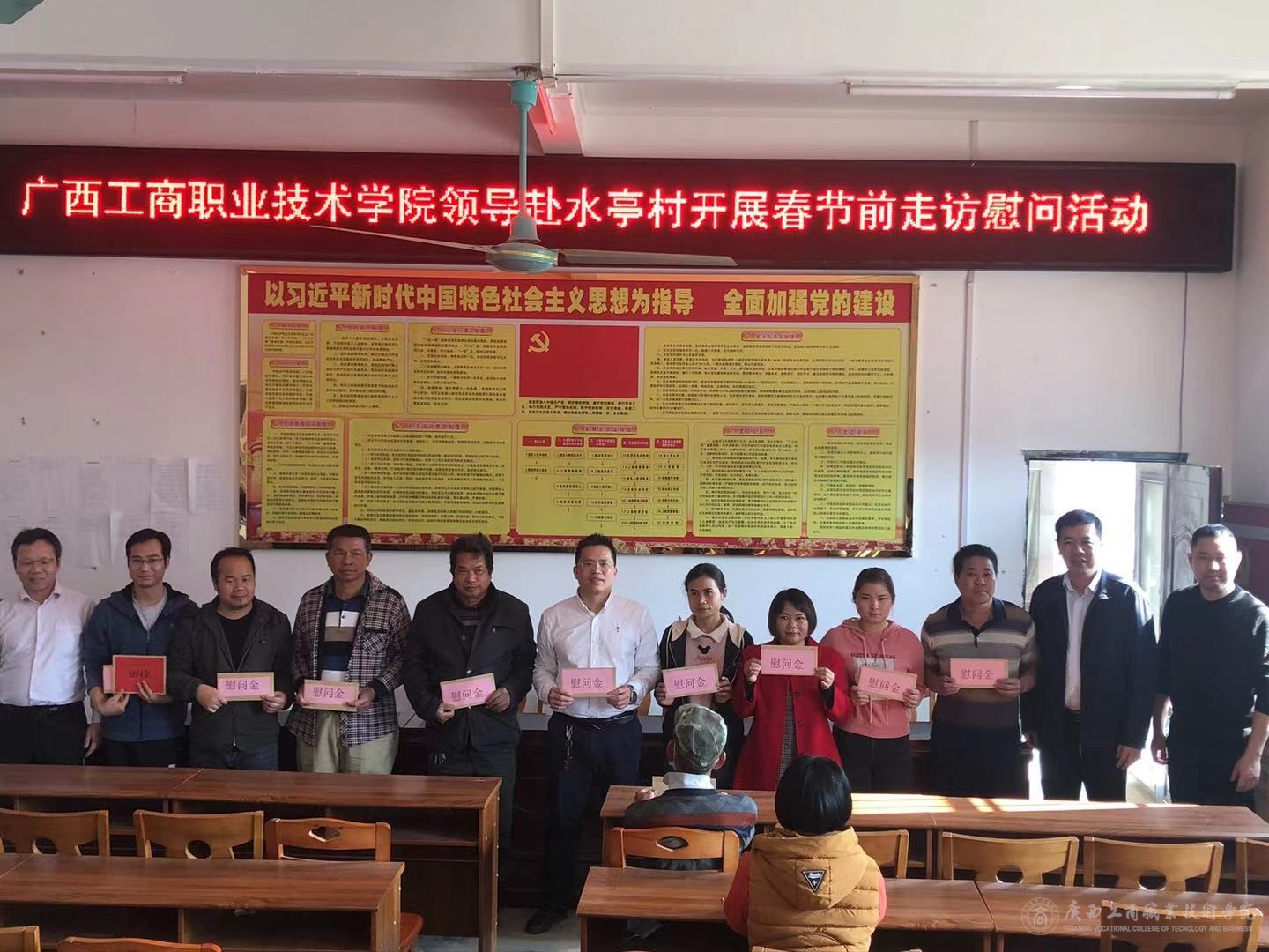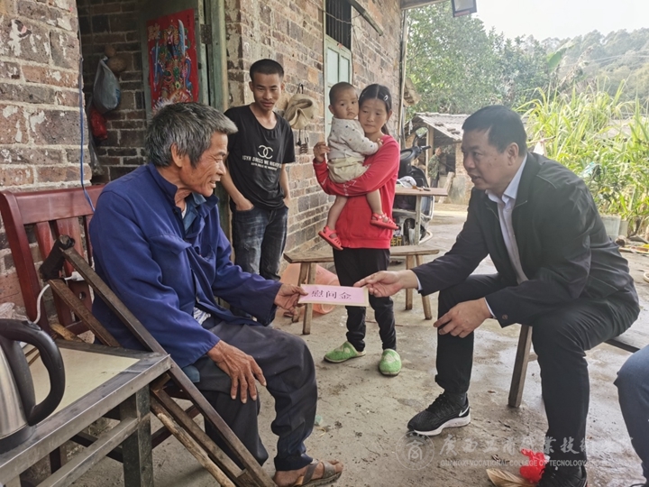 2月2日,學(xué)院院長李維、副院長陳寧春、副院長闕勇平率隊(duì)先后到陸川縣清湖鎮(zhèn)水亭村、那若村開展脫貧攻堅(jiān)(鄉(xiāng)村振興)工作隊(duì)員春節(jié)慰問活動(dòng)。隨行人員有教務(wù)處、科研規(guī)劃處、后勤管理處、國有資產(chǎn)管理處、信息中心、信息與設(shè)計(jì)學(xué)院等部門領(lǐng)導(dǎo)。