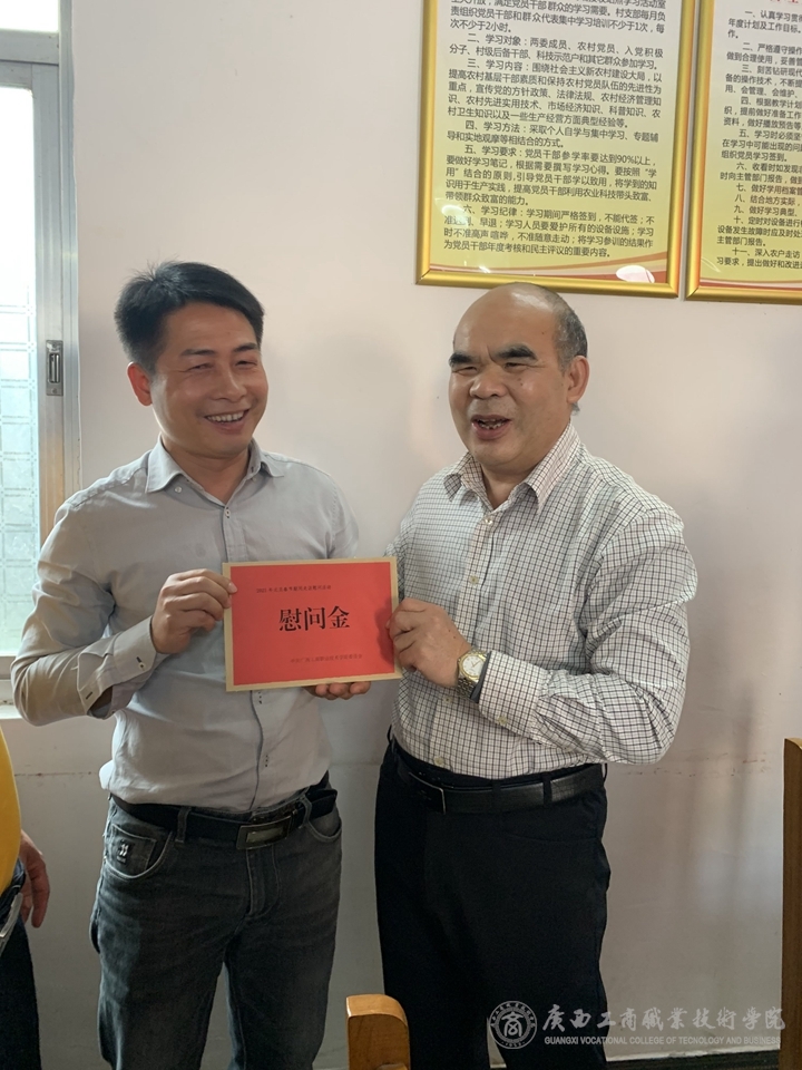 2021年2月3日-4日,由學(xué)院黨委書記覃武云同志率隊,副院長安仲文同志、黨委組織部、招生就業(yè)工作處、工會(離退休工作辦公室)、財金學(xué)院、會計學(xué)院、管理學(xué)院等部門代表一行9人赴陸川縣古城鎮(zhèn)八角村、良村村,走訪慰問駐村黨組織第一書記、村干部、貧困戶代表。