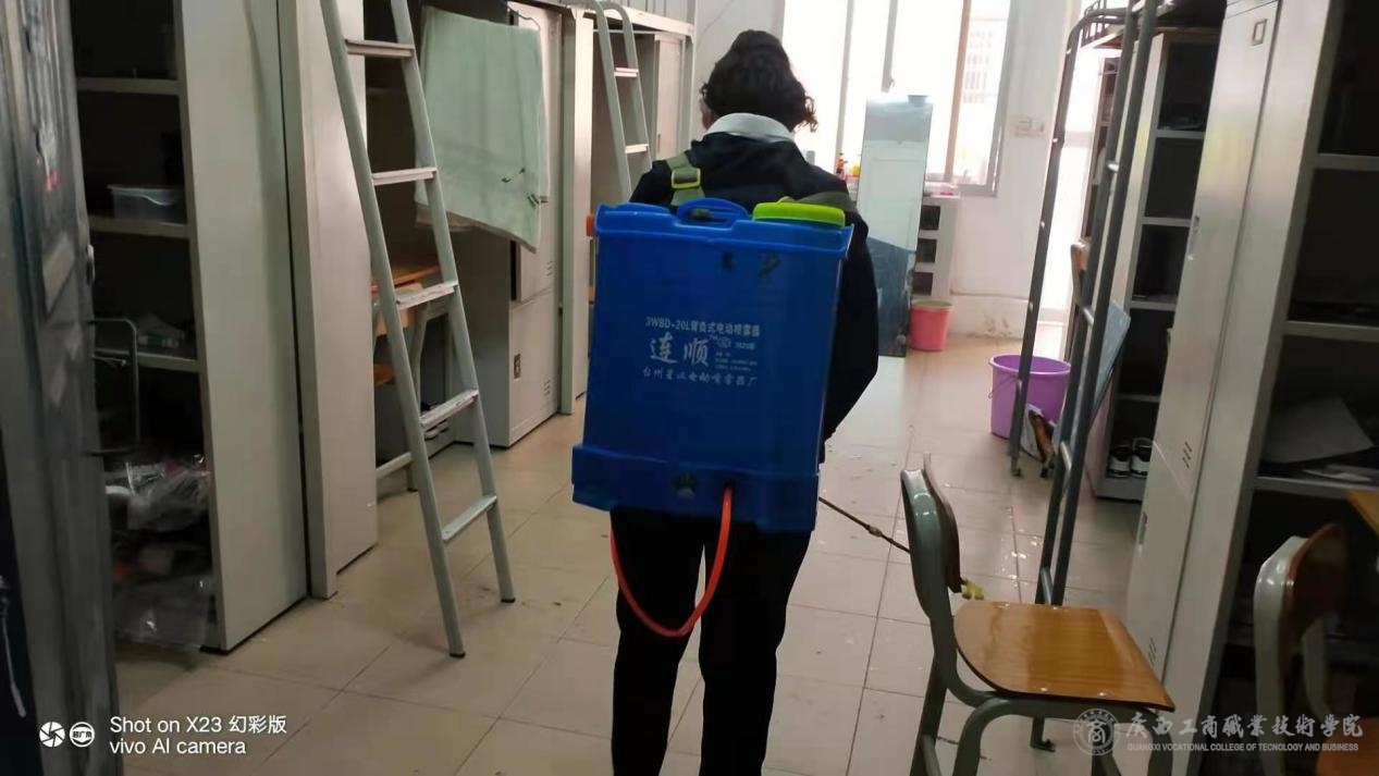 為確保疫情防控常態(tài)化形勢(shì)下,學(xué)生返校后宿舍環(huán)境干凈、整潔、舒適, 2月底3月初,學(xué)院宿舍管理員在黨委學(xué)生工作部宿管科工作人員的帶領(lǐng)下,全體出動(dòng)對(duì)鵬飛、中堯、武鳴三個(gè)校區(qū)共12棟學(xué)生宿舍樓進(jìn)行全面的清掃和消毒。